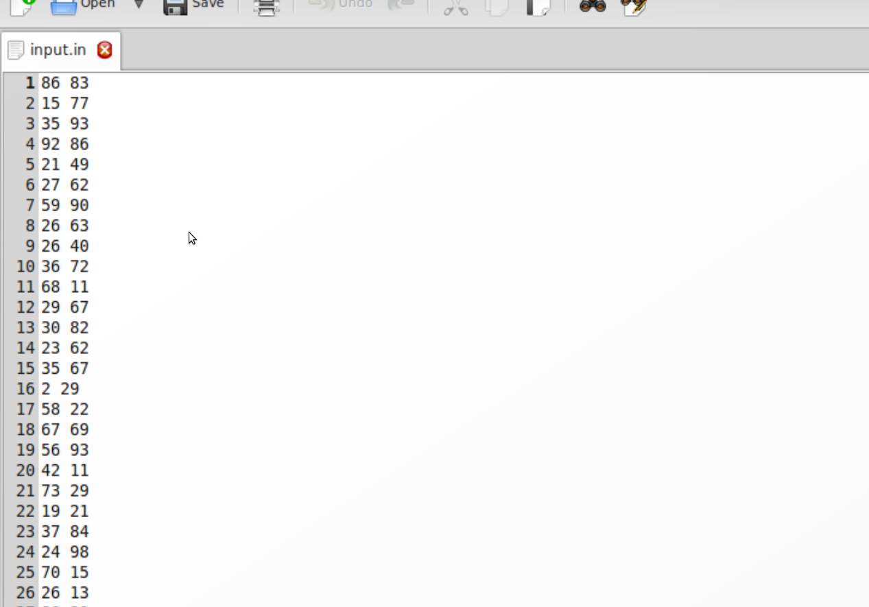 যেকোনো প্রবলেমকে ৩টা অংশ ভাগ করা যায়। প্রথম ভাগে থাকে প্রবলেমের বর্ণনা। এরপরে থাকে “Input” অংশ। এই অংশ বলা থাকে তোমাকে কি ধরণের ভ্যালুর জন্য প্রবলেমটা সলভ করতে হবে। “Output” অংশে থাকে কিভাবে আউটপুট প্রিন্ট করতে থাকে। কয়েকটি sample input/output দেয়া হয় বোঝার সুবিধার জন্য। কিন্তু এটা কিন্তু জাজ এর Input না। জাজের একটি ইনপুট ফাইল থাকে, hashmat প্রবলেমটার জন্য সেটা হতে পারে এরকম: