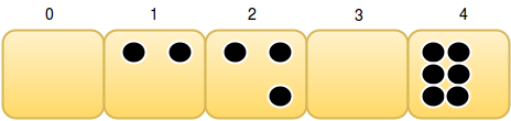 নিম্বল গেম এ $n$ টা ঘর থাকে যাদেরকে $0$ থেকে $n-1$ দিয়ে চিহ্নিত করা হয়। প্রতিটা ঘরে এক বা একাধিক কয়েন থাকে। নিচের ছবি দেখো: