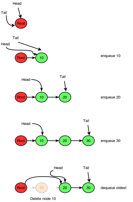 একটা সমাধান হলো লিংকড লিস্ট ব্যবহার করা। লিংকড লিস্ট ব্যবহার করলে প্রথম সুবিধা হলো কিউ এর সাইজ ফিক্সড করে দেয়া দরকার নেই। আরেকটা সুবিধা হলো তুমি যখন ডিকিউ করবে তখন টেইল পয়েন্টার যে এলিমেন্টকে পয়েন্ট করে আছে তাকে মেমরি থেকে মুছে দিতে পারবে। লিংকড লিস্ট ব্যবহার করে একটা সিমুলেশন দেখি।