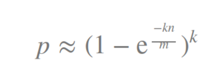 এভাবে ব্লুম ফিল্টার ব্যবহার করে তুমি সার্ভার বা ডাটাবেস এক্সেস অনেক কমিয়ে আনতে পারবে। ব্লুম ফিল্টারের পারফরমেন্স বাড়াতে হলে আমাদেরকে ফলস পজিটিভ কমাতে হবে। ব্লুম ফিল্টারের এরোর রেট মূলত নির্ভর করে হ্যাশ ফাংশনের সংখ্যা (k) এবং ফিল্টারের সাইজের (m) উপর। নিচের ফর্মুলা ব্যবহার করে এরোর রেট বের করা যায়:এখানে k = হ্যাশ ফাংশনের সংখ্যা, m = বিট ভেক্টরের সাইজ, n = ইনপুটের সাইজ। ফর্মুলা কিভাবে ডিরাইভ করা হয়েছে সেটা আমি এখানে বর্ণনা করবো না, তুমি চাইলে অন্য কোথাও থেকে পড়ে নিতে পারো।