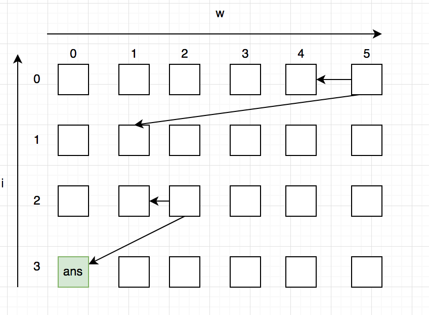 এখানে একটা দারুণ মেমরি অপটিমাইজেশনের সুযোগ আছে। খেয়াল করো, ভিতরের লুপে আমাদের খালি $i+1$ রো এর ভ্যালুগুলো লাগছে। তারমানে $i$ এর মান যখন $x$ তখন খালি তোমার row $x + 1$ এর ভ্যালুগুলো দরকার হবে, বাকিগুলো টেবিল আর কোনো কাজে লাগবে না। তারমানে বর্তমান রো এবং তার আগের রো ছাড়া বাকিগুলো কাজে লাগছে না। এভাবে তুমি $2*W$ সাইজের টেবিল ব্যবহার করেই প্রবলেমটা সলভ করতে পারো।